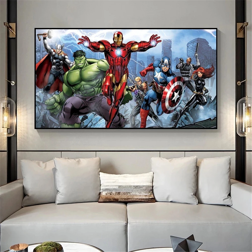 Постер на холсте с супергероями Марвел, большого размера, для украшения дома, гостиной, Безрамная печать, декоративная картина на стену живопись