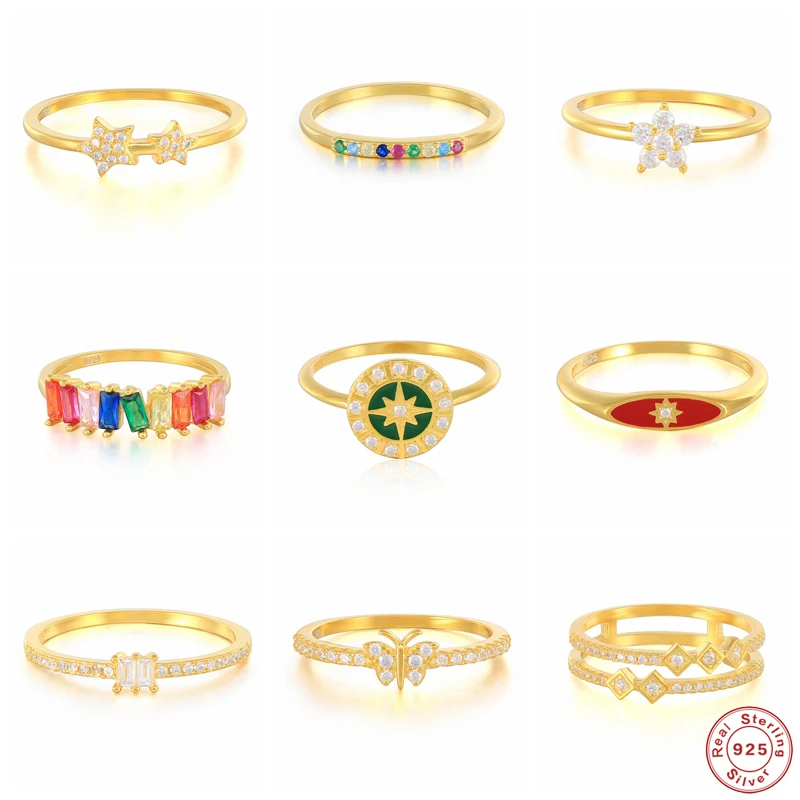 Женские кольца в виде бабочки из серебра 925 пробы с радужным цирконием и звездами, роскошные круглые разноцветные ювелирные изделия с кристаллами, тренд 2021