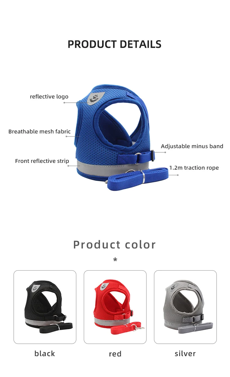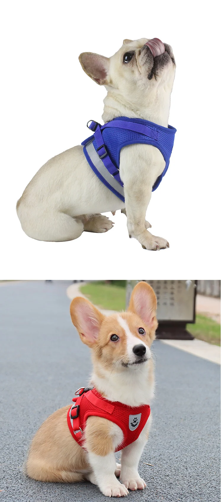 Светоотражающая шлейка с поводком для домашних питомцев, жилетка-поводок для маленьких и средних собак, щенков, Мопсов чихуахуа, бульдогов
