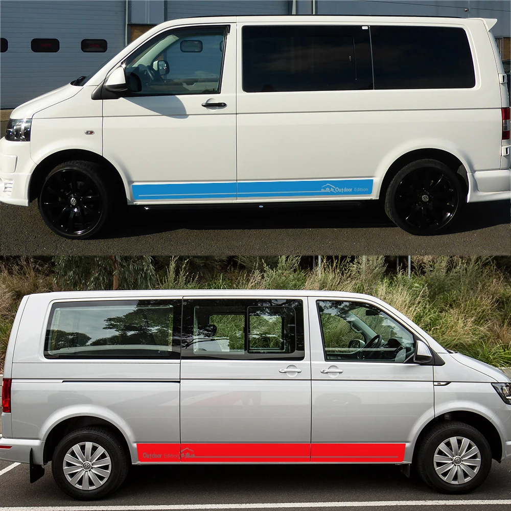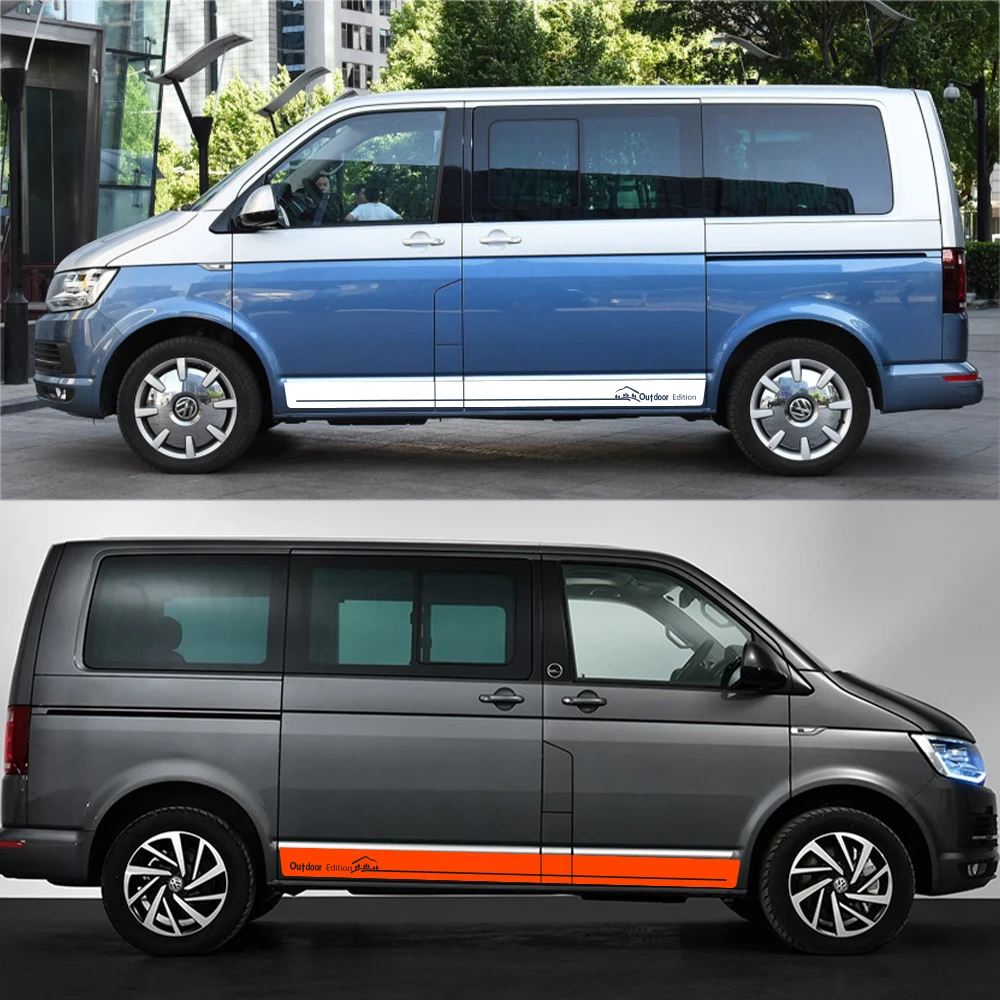 2 шт. боковые наклейки на двери автомобиля для Volkswagen Multivan Transporter Caravelle T5 T6 юбки наклейки авто аксессуары