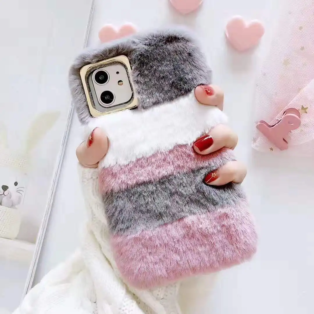 Радужный Пушистый Плюшевый Меховой чехол для телефона Xiaomi Mi 11 ...