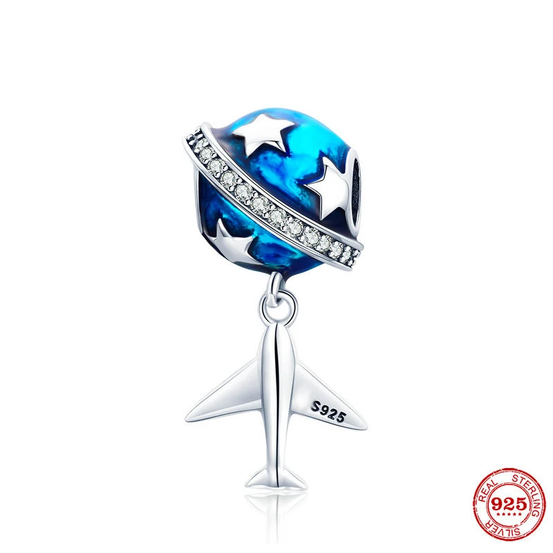 Новые серебряные бусины 925 пробы голубая планета самолет на крючка...
