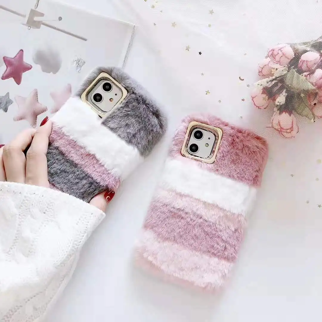 Радужный Пушистый Плюшевый Меховой чехол для телефона Xiaomi Mi 11 ...