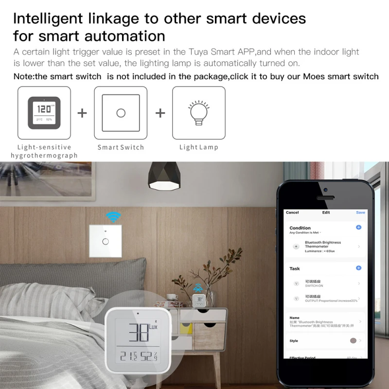 1. Умный термометр с яркостью определяет изменения в окружающем светильник, температуру и влажность в режиме реального времени; Активно сообщайте пользователю конец через приложение smart Life как встроенный протокол Bluetooth. Действительно хорошее дополнение для здоровья тела с детектором в реальном времени домашней яркости, температуры и влажности с высокой точностью.