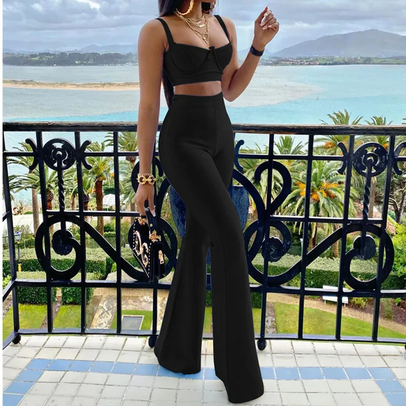 Бандажный комплект из 2 предметов, бюстье без рукавов на бретелях и длинные брюки-клеш, сексуальное вечернее платье знаменитости, 2021