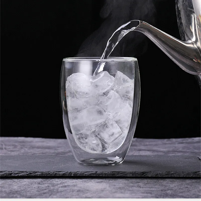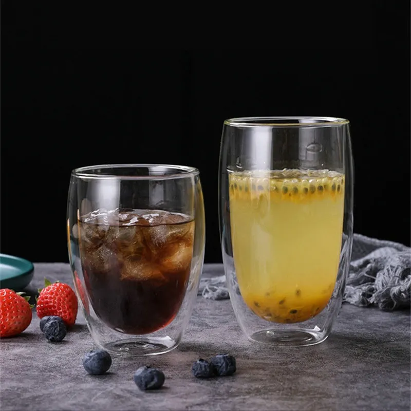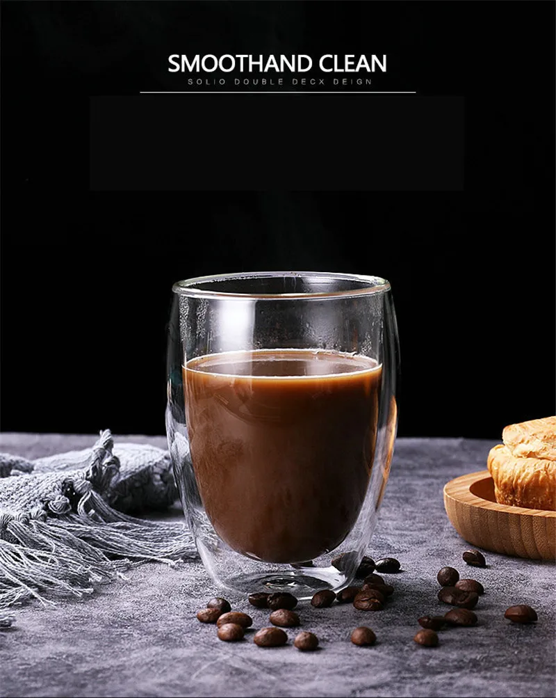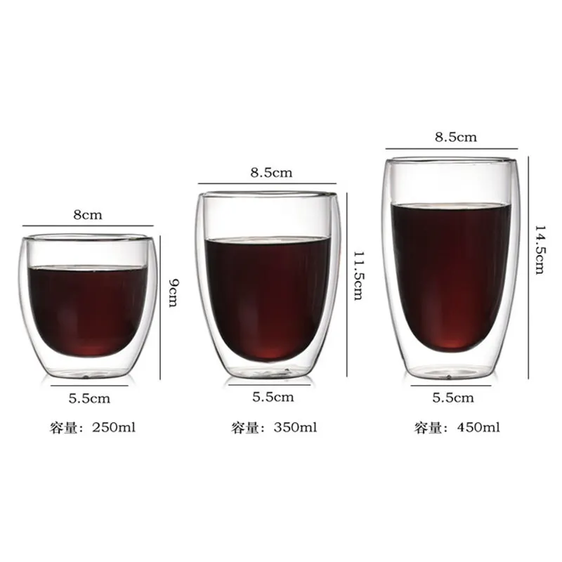 Стеклянная термостойкая чашка с двойными стенками, 80150250350 мл, чашки для кофе и воды, прозрачная кружка для напитков, чайные кружки