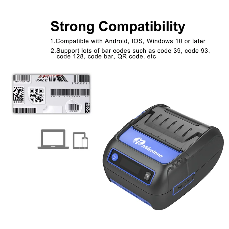 Термопринтер Milestone Handheld 58 мм USB Bluetooth Портативный для чеков ярлыков SDK Android IOS Windows билетовпринтер штрих-кодов