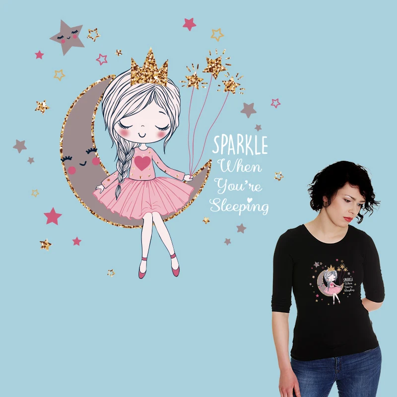 Милая девушка Луна Звезда теплопередача ПВХ патч термопередача искусственная для одежды патчи для одежды