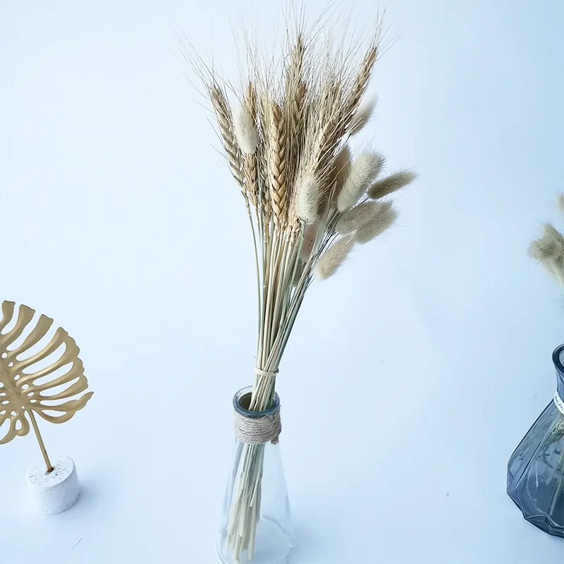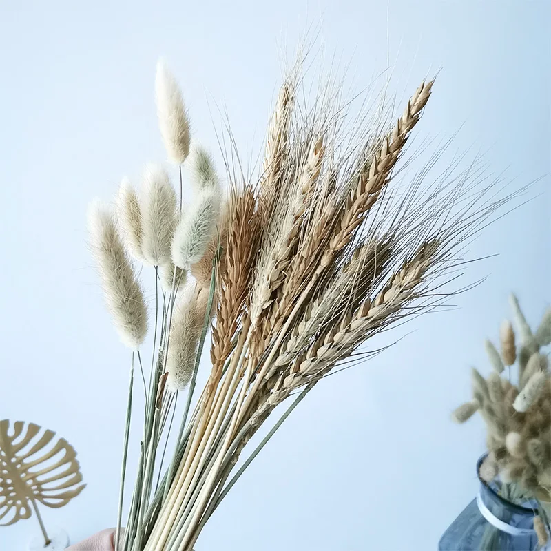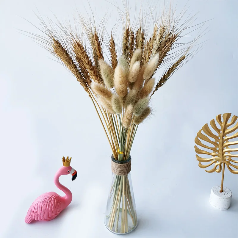 20 штук в режиме реального пшеницы цветок уха натуральные сухие цветы для украшения свадьбы, дома, вечерние украшения для самодельного изготовления Кролик хвост трава пшеницы букет