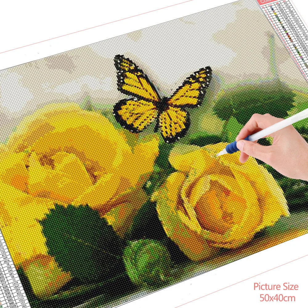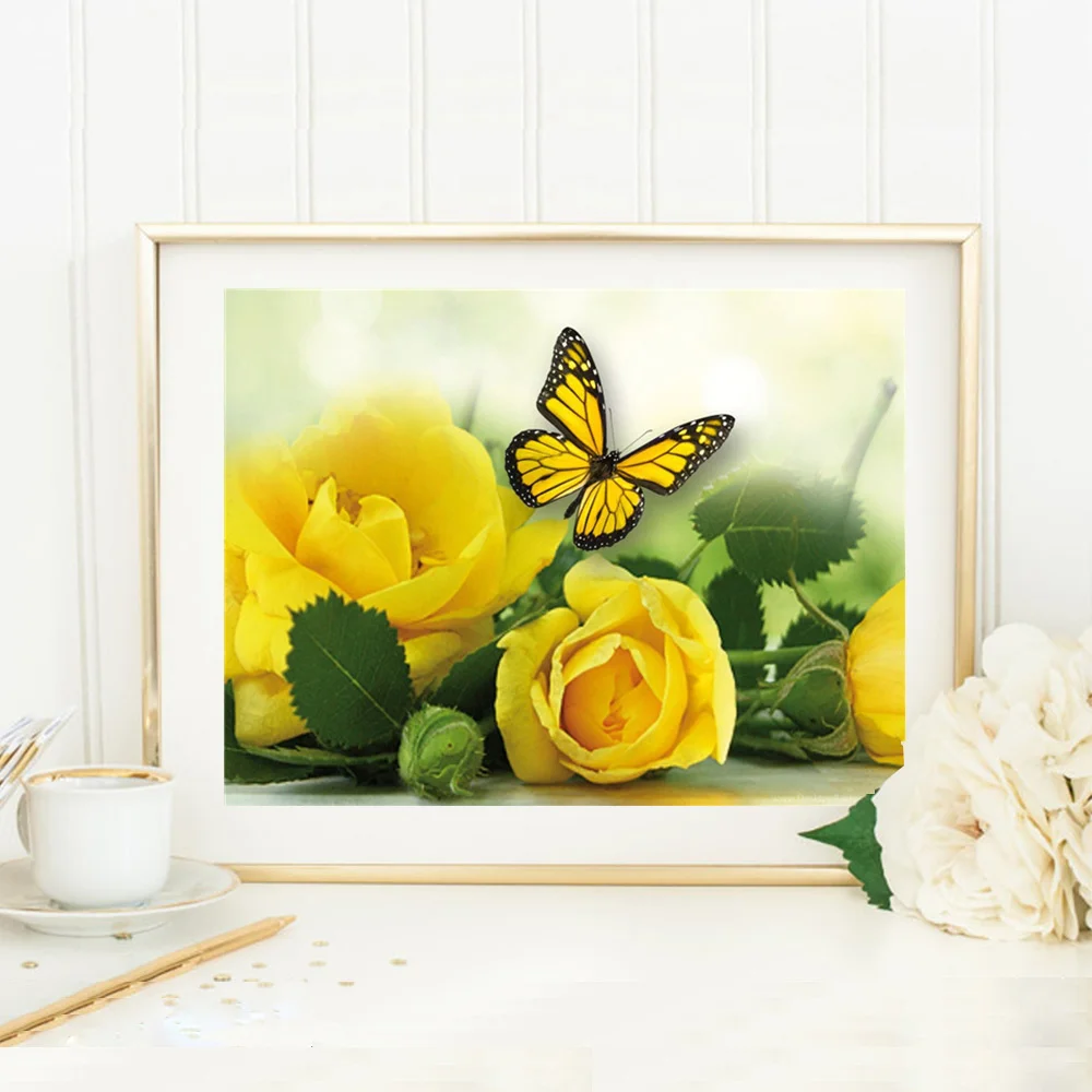 Алмазная живопись HUACAN, настенные наклейки с цветами розы, вышивка мозаикой в виде бабочки, домашний декор