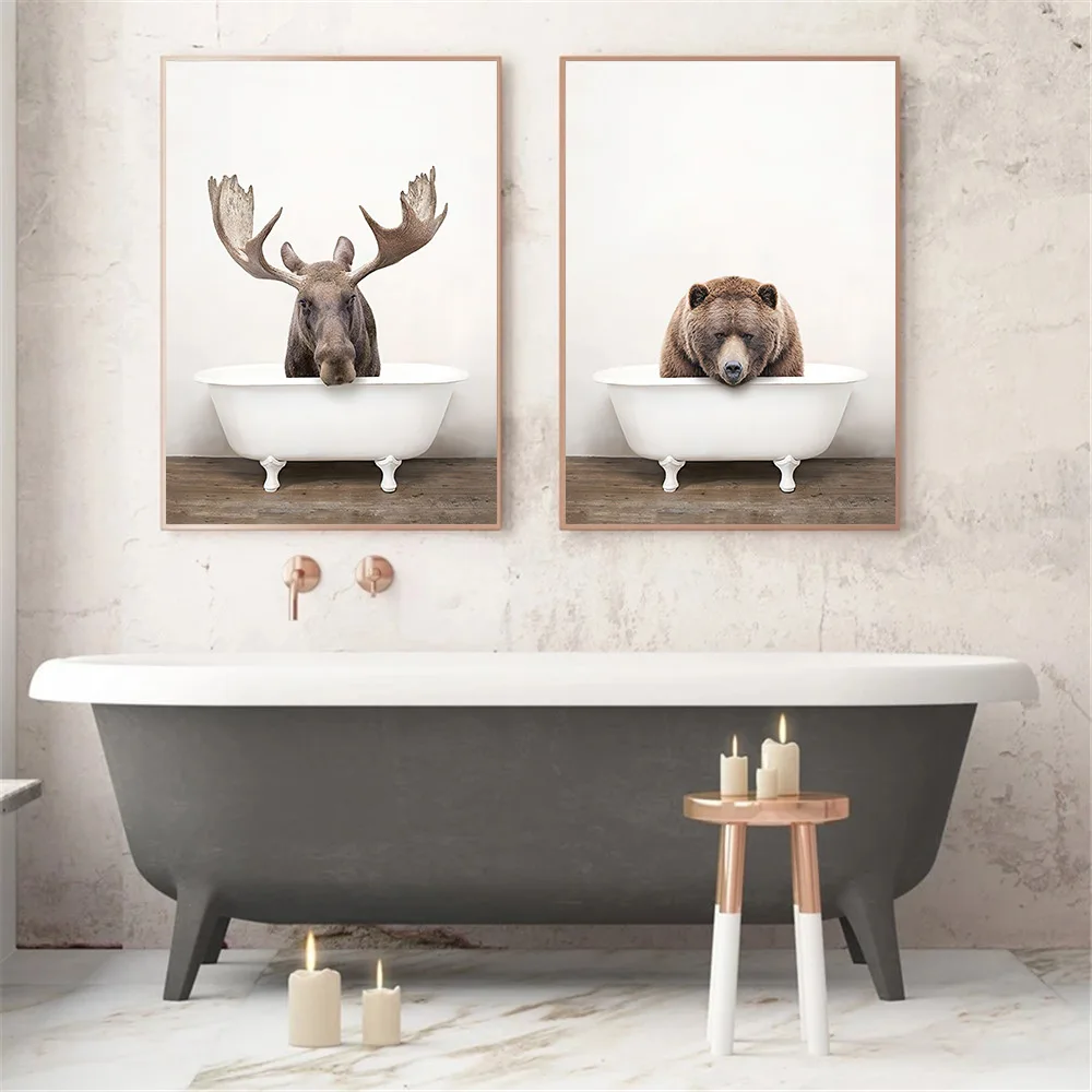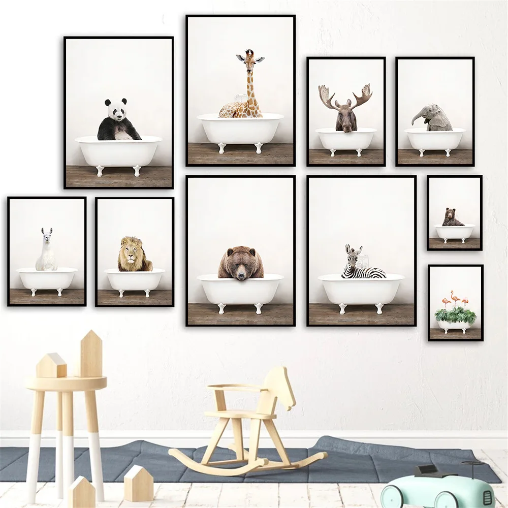 Лев "Зебра" Жираф "Слон" Ванна Холст плакат для детской стены малышей с художественным принтом картины с изображением животных Ванная комната детской комнаты настенный Декор