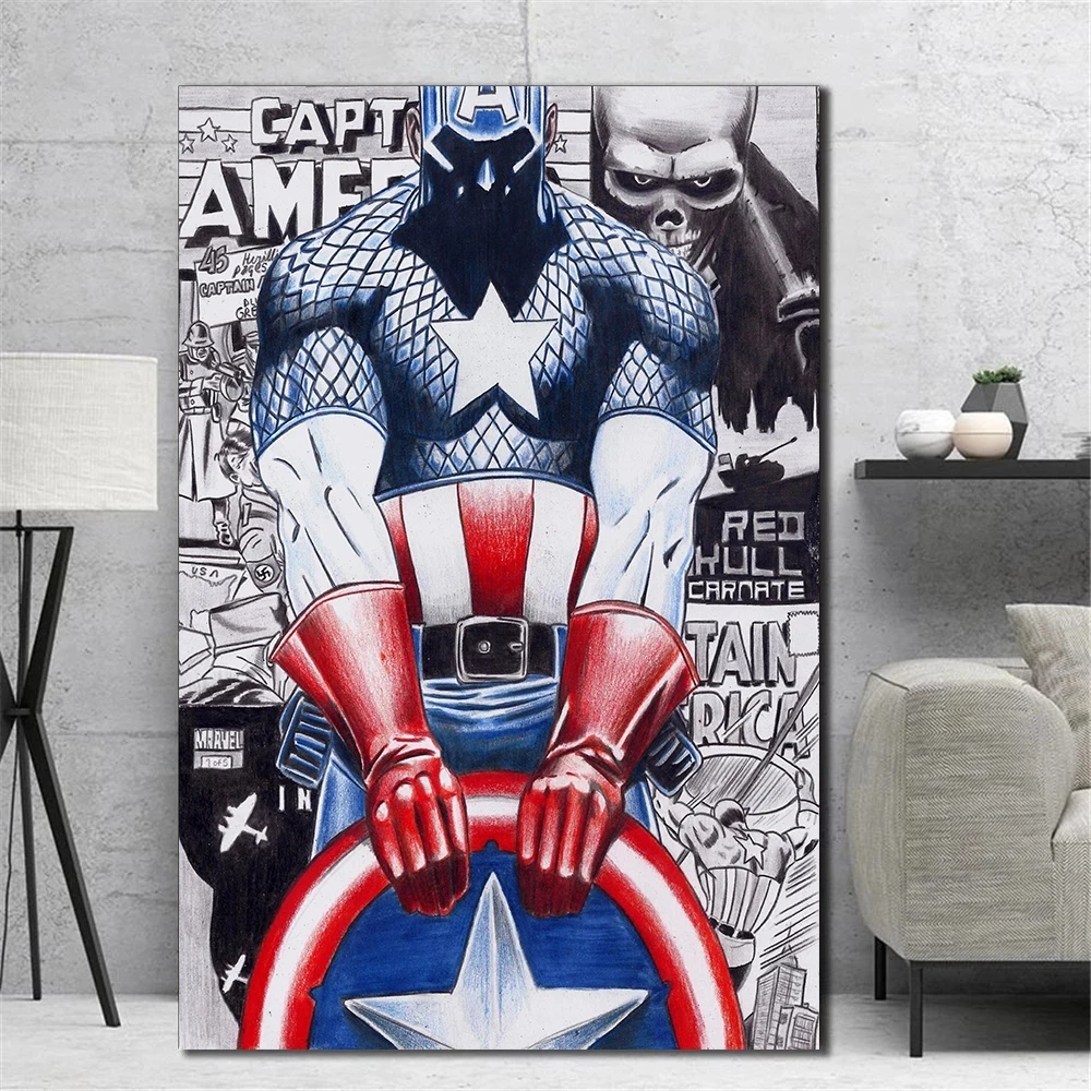 Настенный постер с изображением головы супергероя Marvel, рисование...