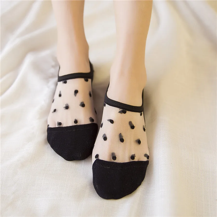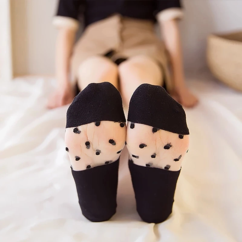 Лидер продаж, милые прозрачные носки в горошек, женские нейлоновые ...