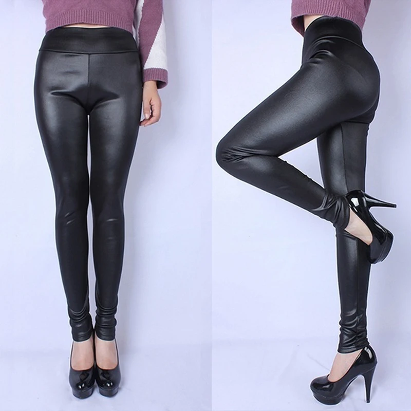 Высокая талия леггинсы из искусственной кожи для женщин пуш-ап бюстгальтер пуш-ап леггинсы из искусственной кожи, блестящий, тянущиеся штаны размера плюс брюки 2021
