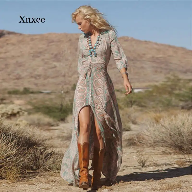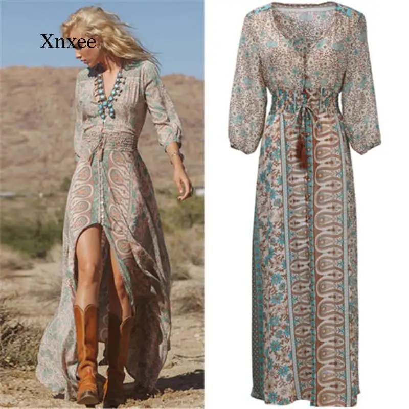 Шифоновое пляжное платье для женщин, шикарное летнее женское платье в стиле бохо, вечернее платье, вечернее фольклорное платье на заказ, длинное платье-халат