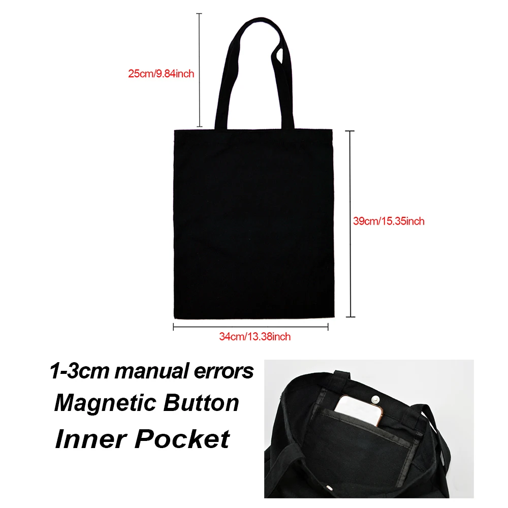 Вместительная холщовая Черная Женская сумка в стиле Харадзюку, мног...