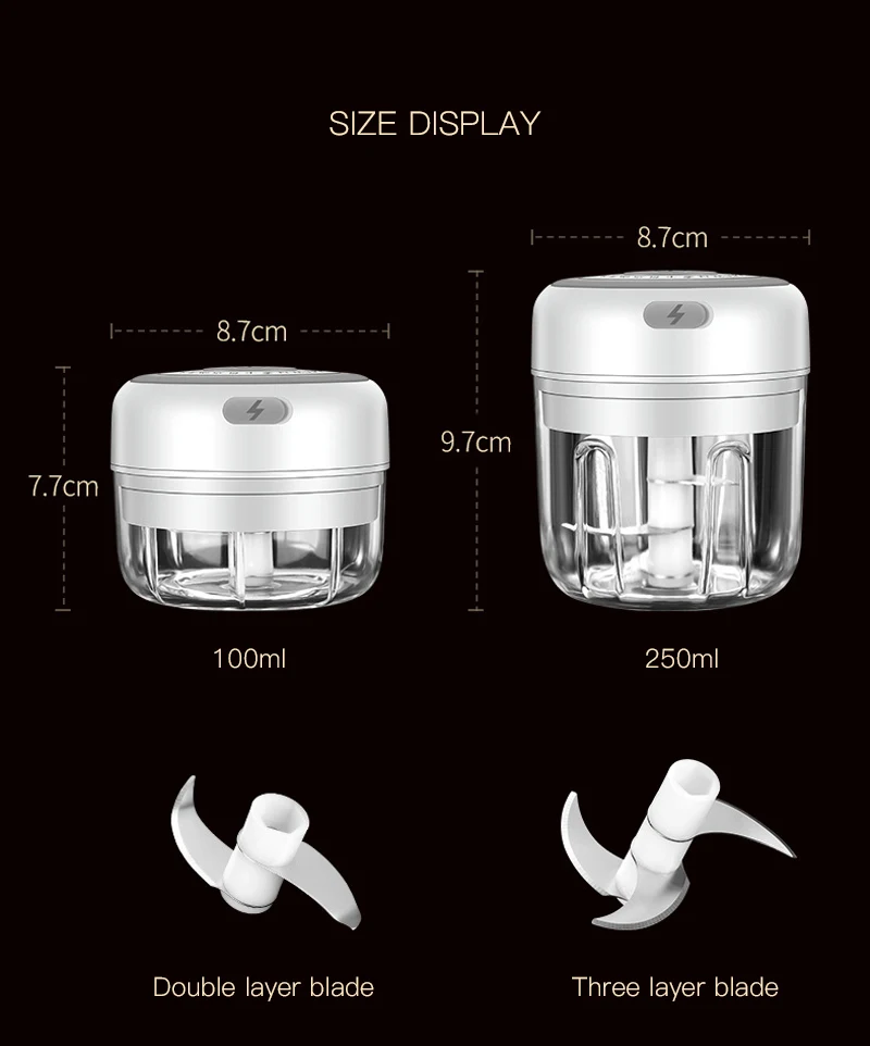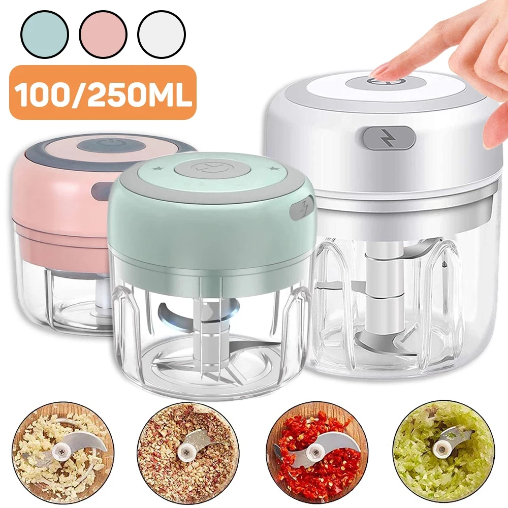 Мини-электрический измельчитель чеснока 100250 мл USB зарядка машина для измельчения имбиря прочный прочный измельчитель овощей с чили кухонный инструмент