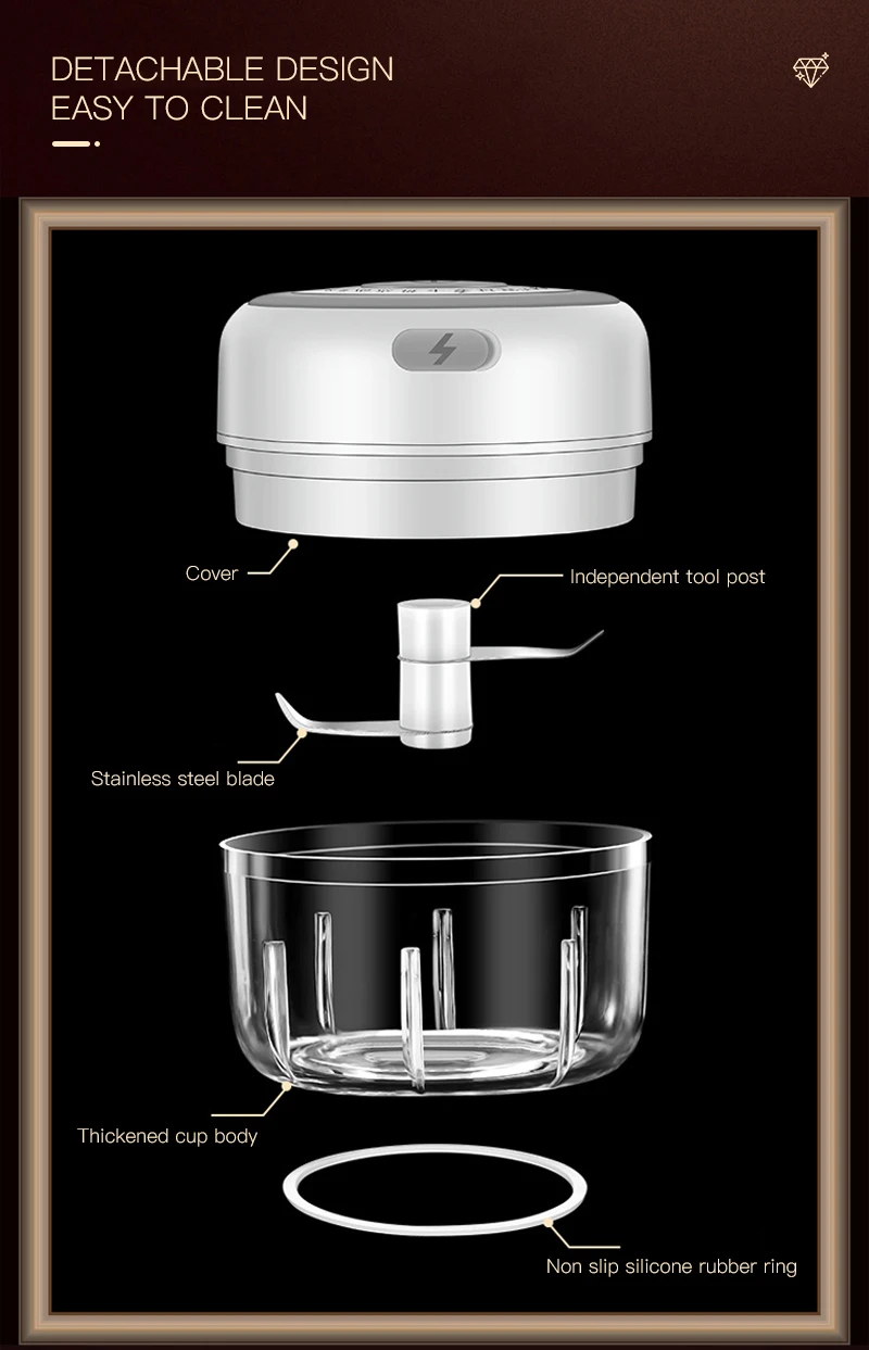 Мясорубка для чеснока беспроводная, с USB-зарядкой
