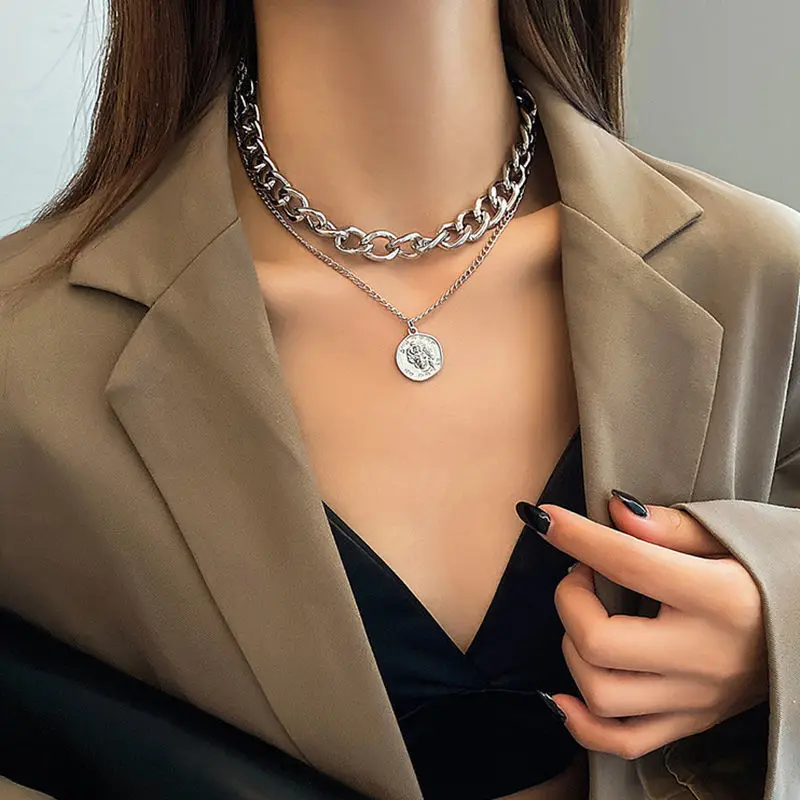 Цепочка-чокер Женская, многослойная, золотистаясеребристая