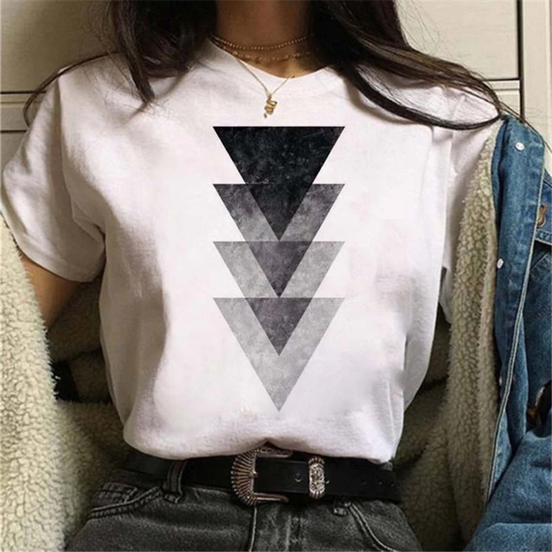Женские футболки с геометрическим принтом, повседневные топы в стиле Харадзюку 90-х, винтажная белая футболка, Милая женская одежда, 27632