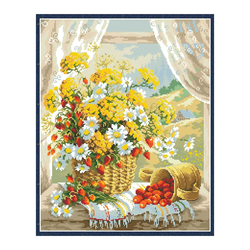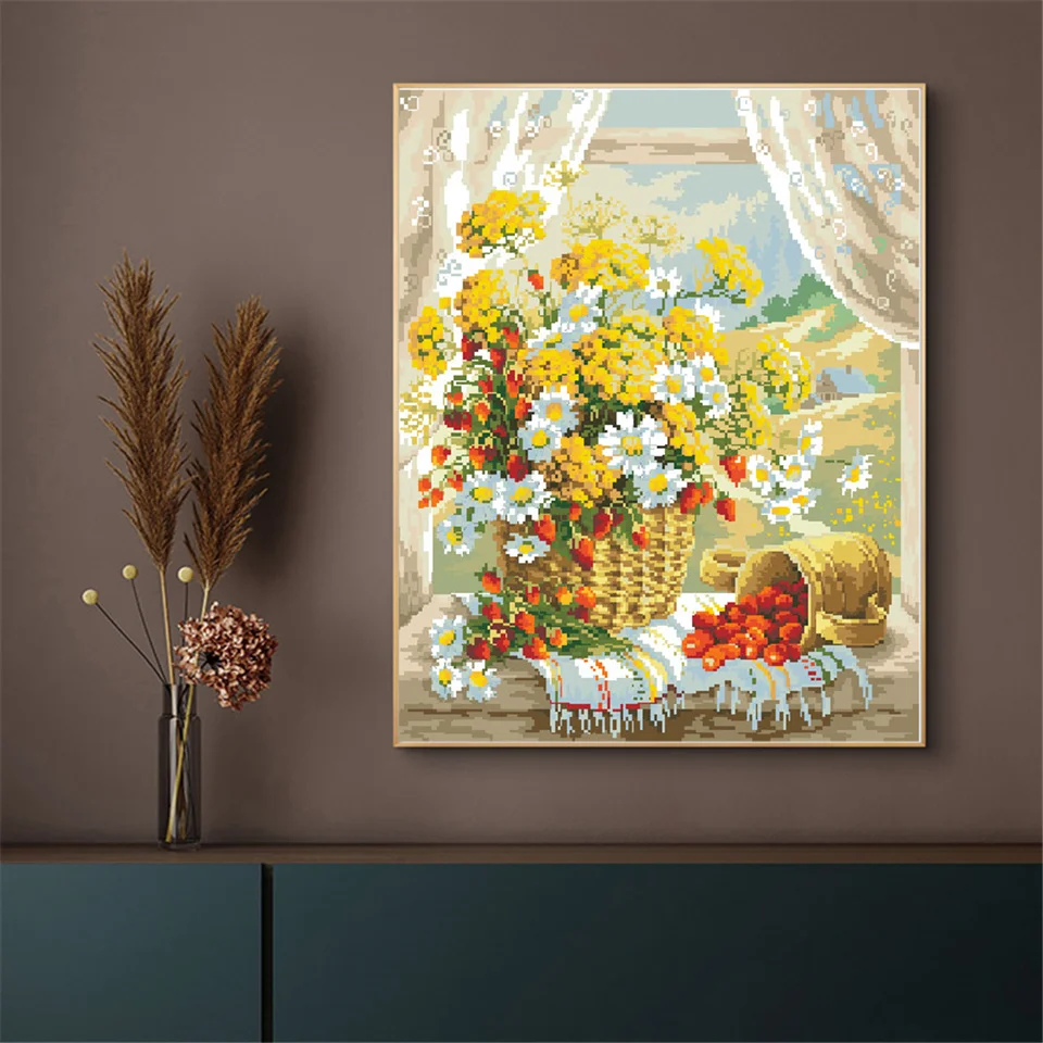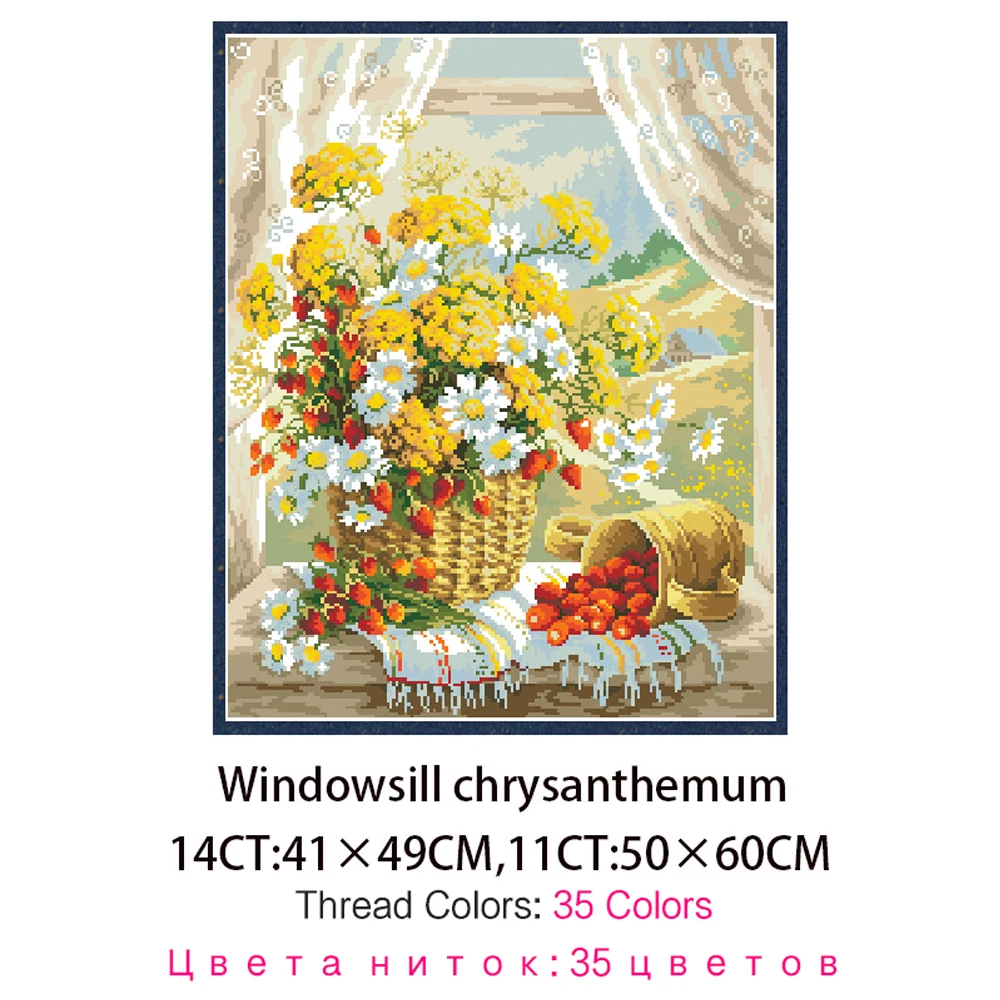 Наборы для вышивки крестиком на подоконнике, хризантемы, наборы для вышивки, ткань без принта 11 14 карат, наборы для рукоделия сделай сам, картины для домашнего декора