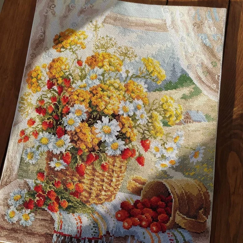 Отличный набор! Канва, схема на листах А-4, нитки и 2 иголки.