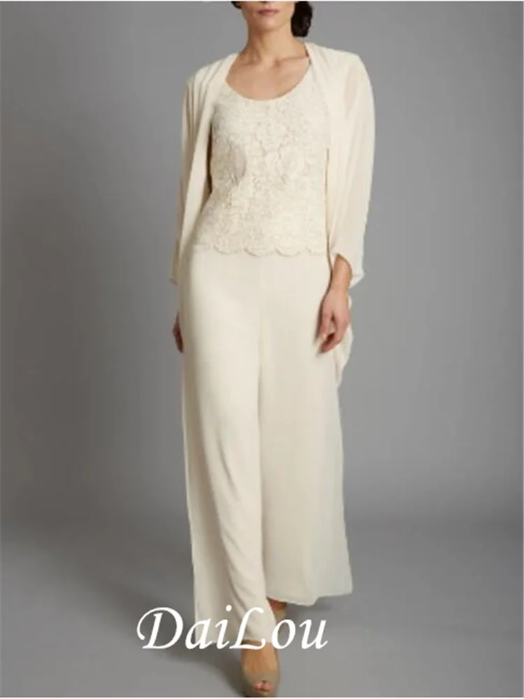 Брючный костюмкомбинезон из двух предметов, платье для матери невесты, женское шифоновое платье до щиколотки без рукавов с кружевом 2022
