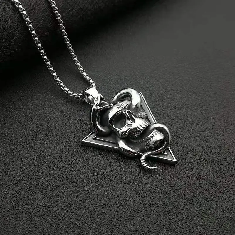 Мужское ожерелье с подвеской в виде черепа и змеи из титановой стали