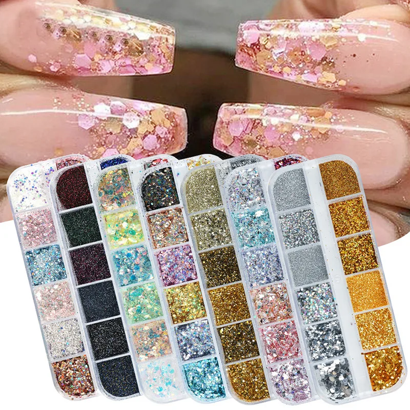 12 видов цветовнабор блесток для ногтей золотые и серебряные блестк...