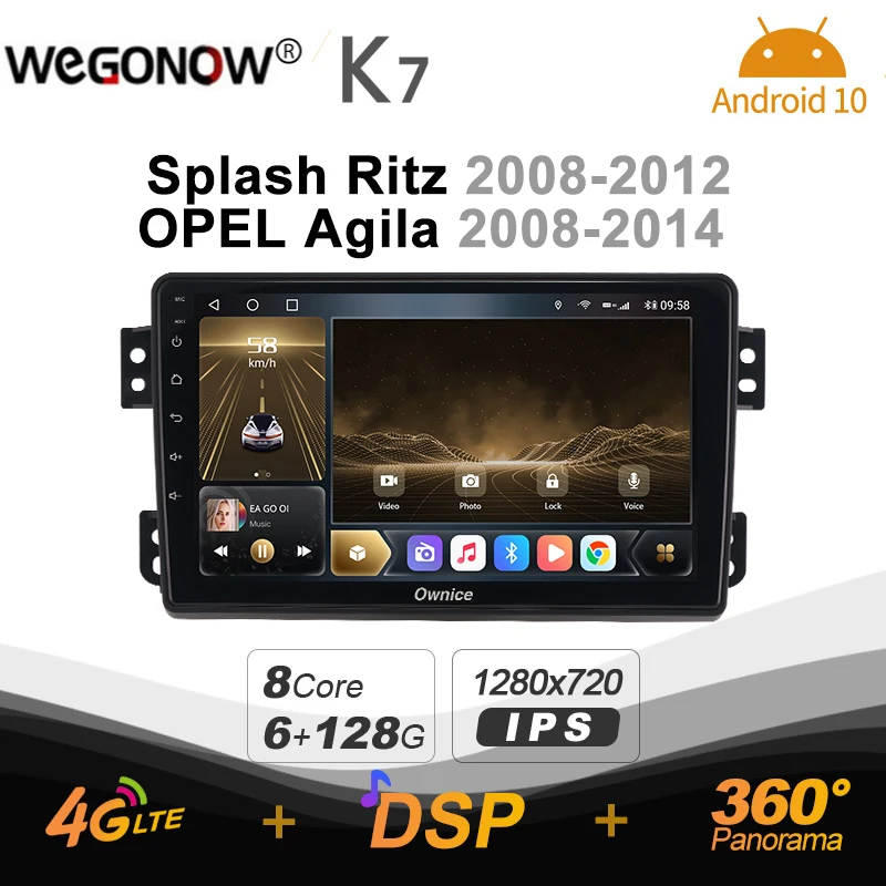 Автомобильная Мультимедийная система Ownice K7, Android 10,0, 6 ГБ + 128 Гб, для SUZUKI Splash Ritz 2008-2012OPEL Agila 2008-2014, 4G LTE