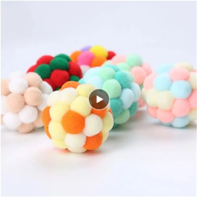 2. Разноцветные плюшевые шарики с колокольчиками, привлекают внимание кошек.