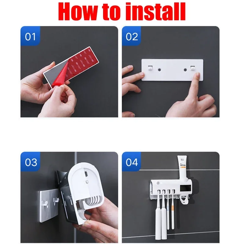 -Крепится на стену УФ стерилизатор зубных щеток, легко крепится к стене с помощью двустороннего скотча.