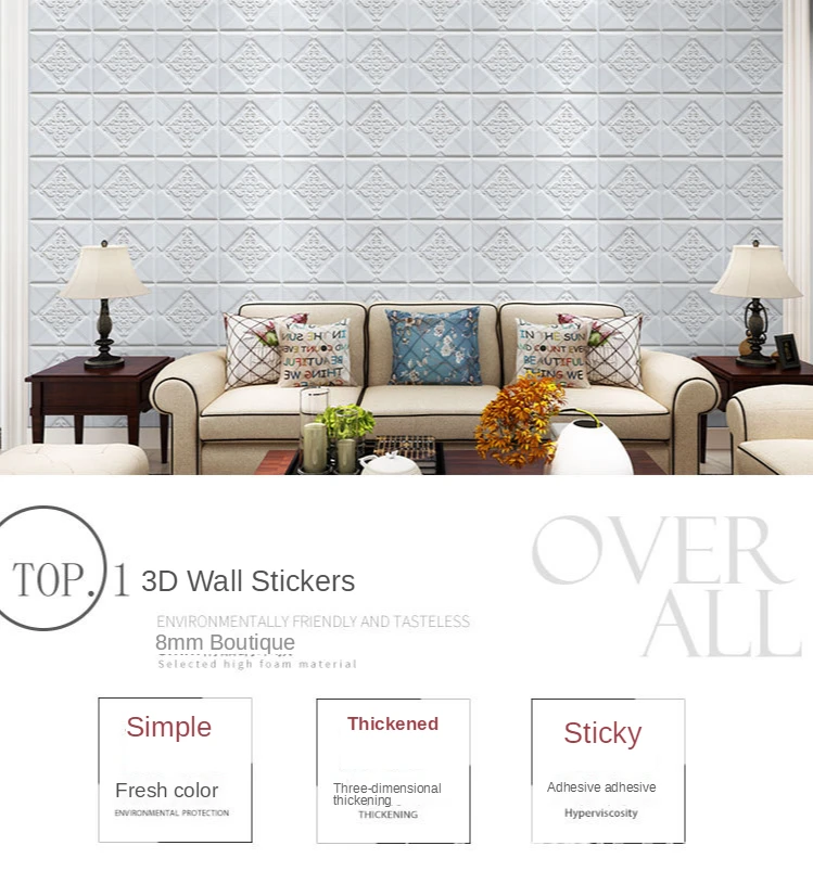 Украшение комнаты Роскошные 3D наклейки на стены мягкие обои для спальни настенный Декор Наклейка на стену с яркой дрелью большой размер 60x60 см