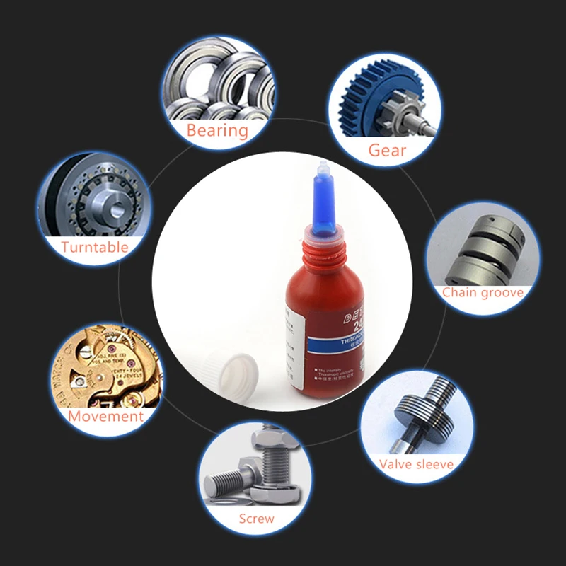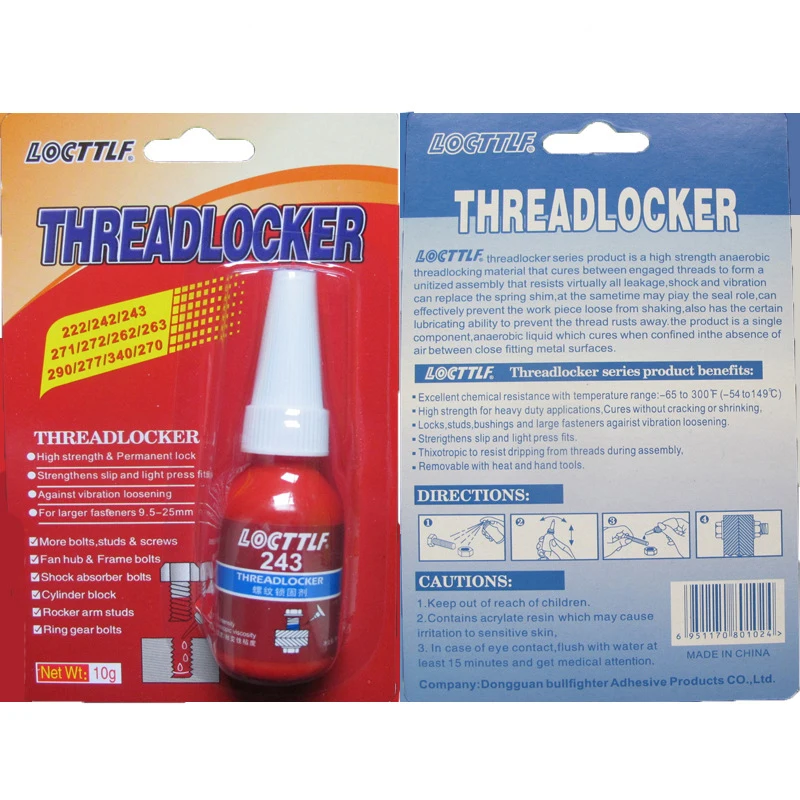 Анаэробный клейкий агент для закрепления резьбы, 10 мл, 243242 клей, маслостойкость, быстроотверждается для всех видов металлических резьб