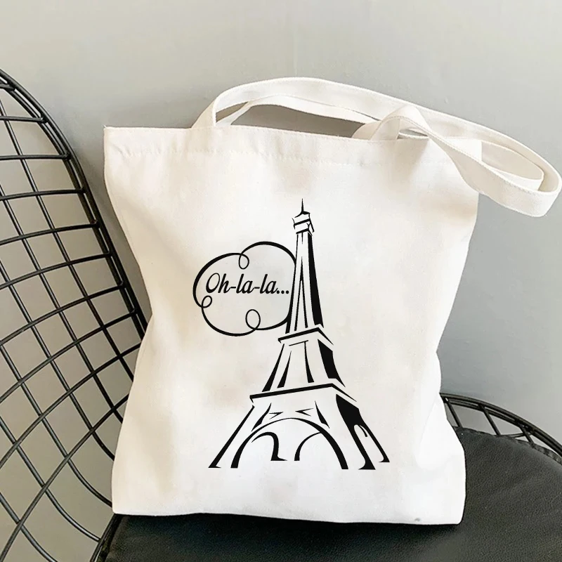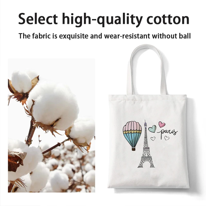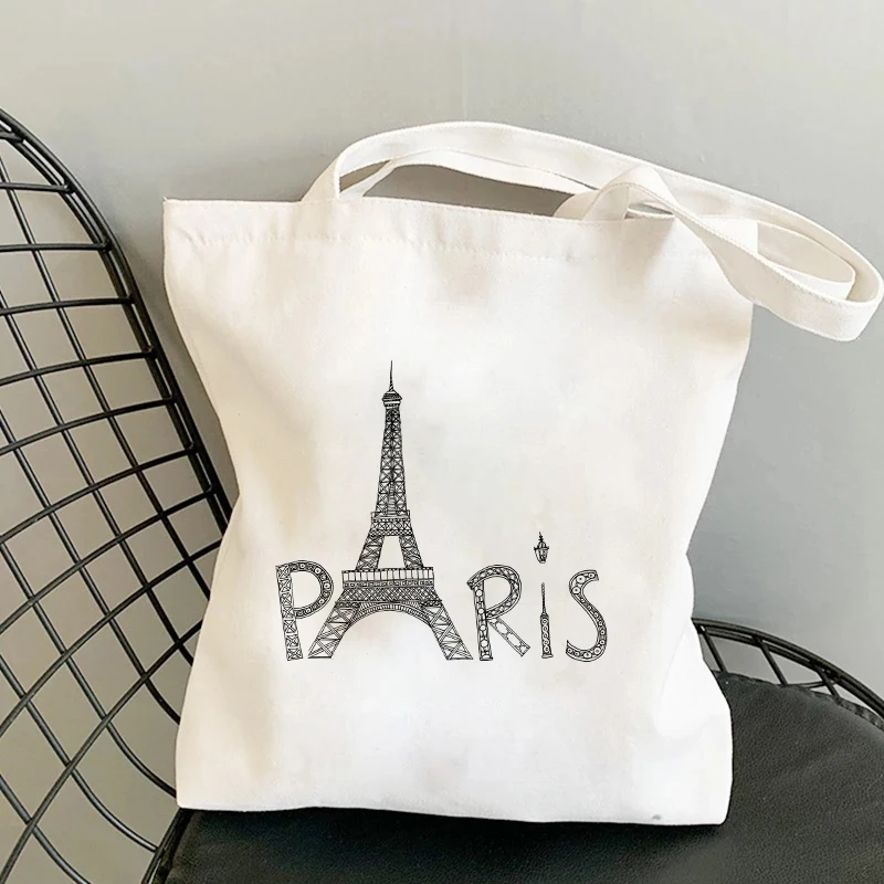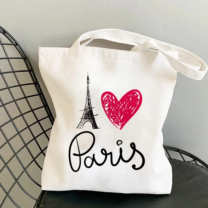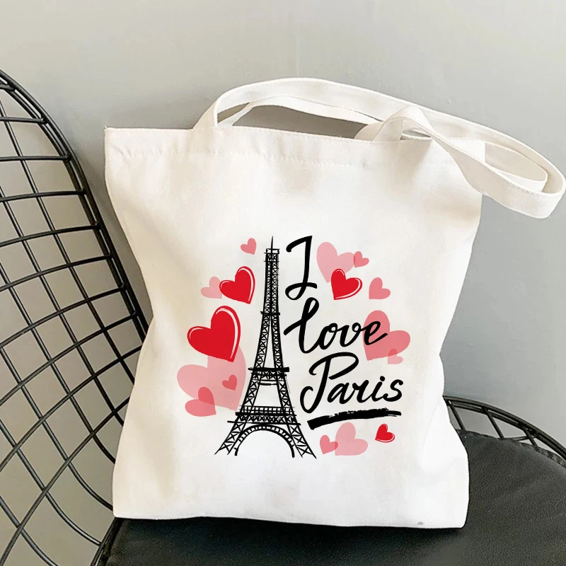 Сумки для покупок с принтом I Love Paris, сумка для покупок, сумка-тоут, холщовые сумки, женская хлопковая тканевая сумка через плечо, Женская эко-сумка, многоразовая продуктовая сумка