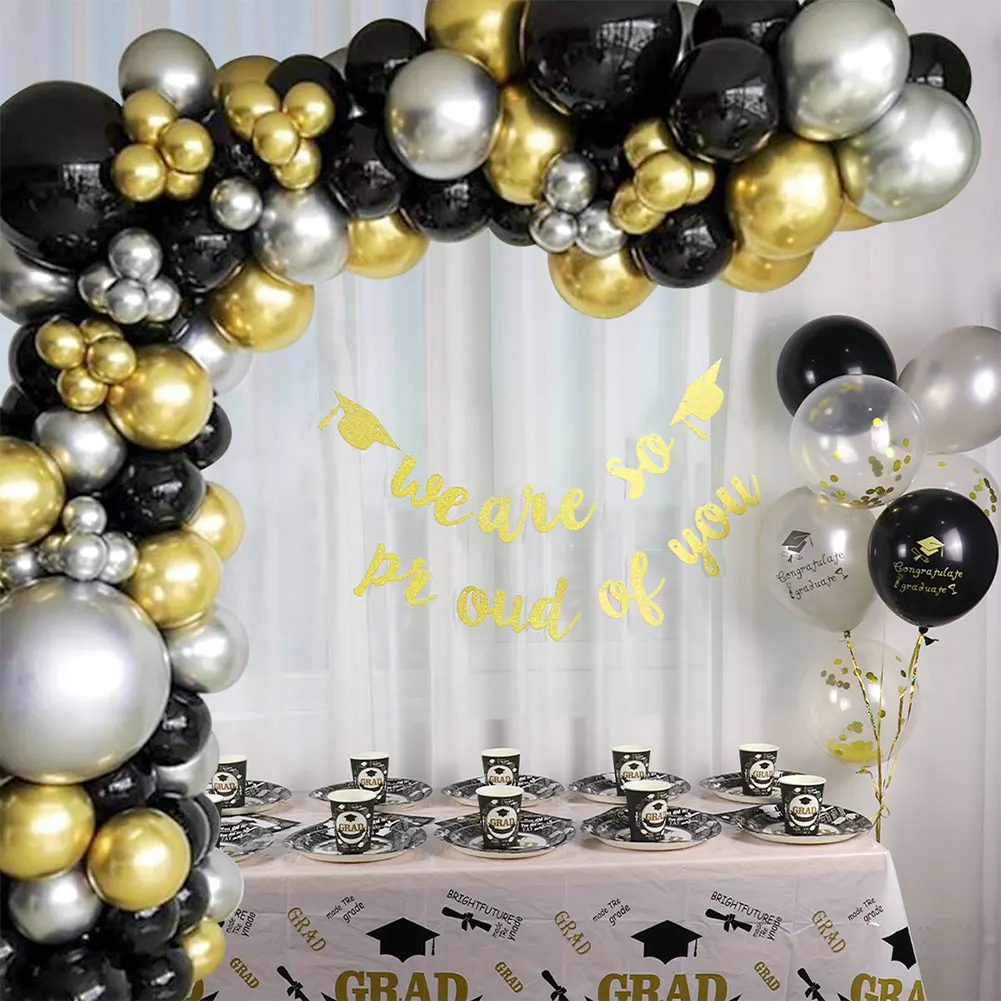 Цвета: черный, золотистый, Выпускной одноразовая посуда воздушные ш...