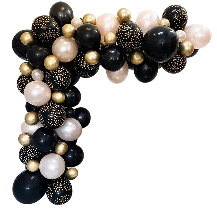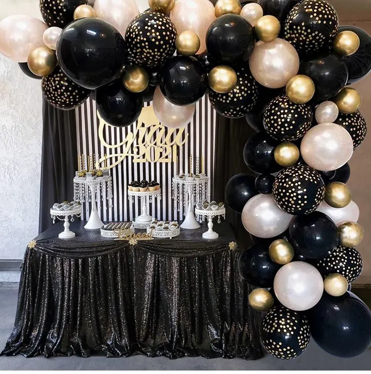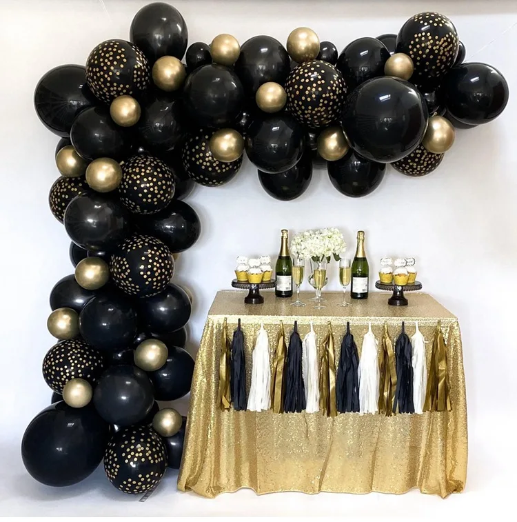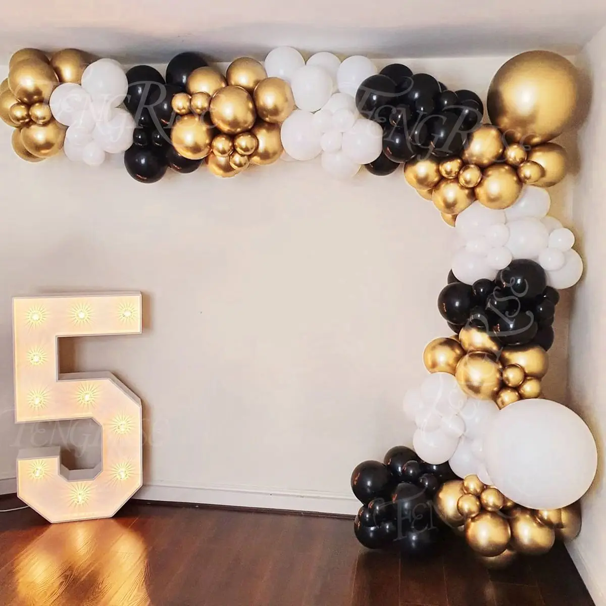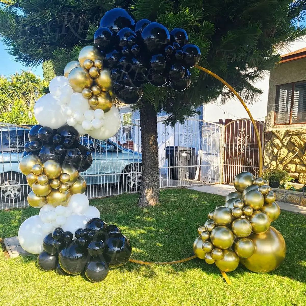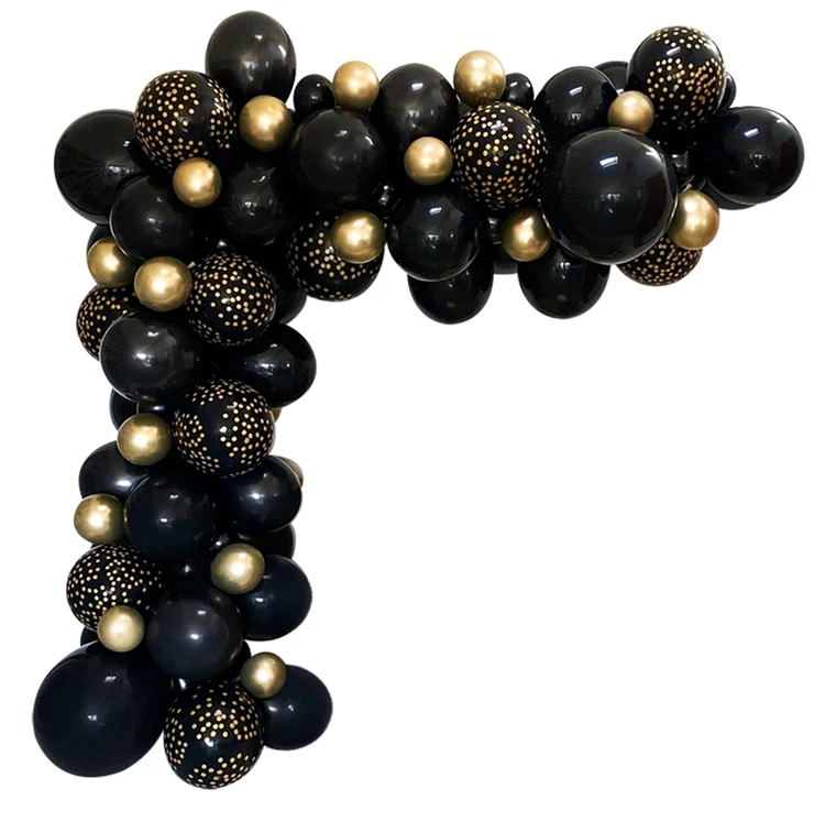 Шар-гирлянда из латекса, черного и золотого цвета, арочный комплект