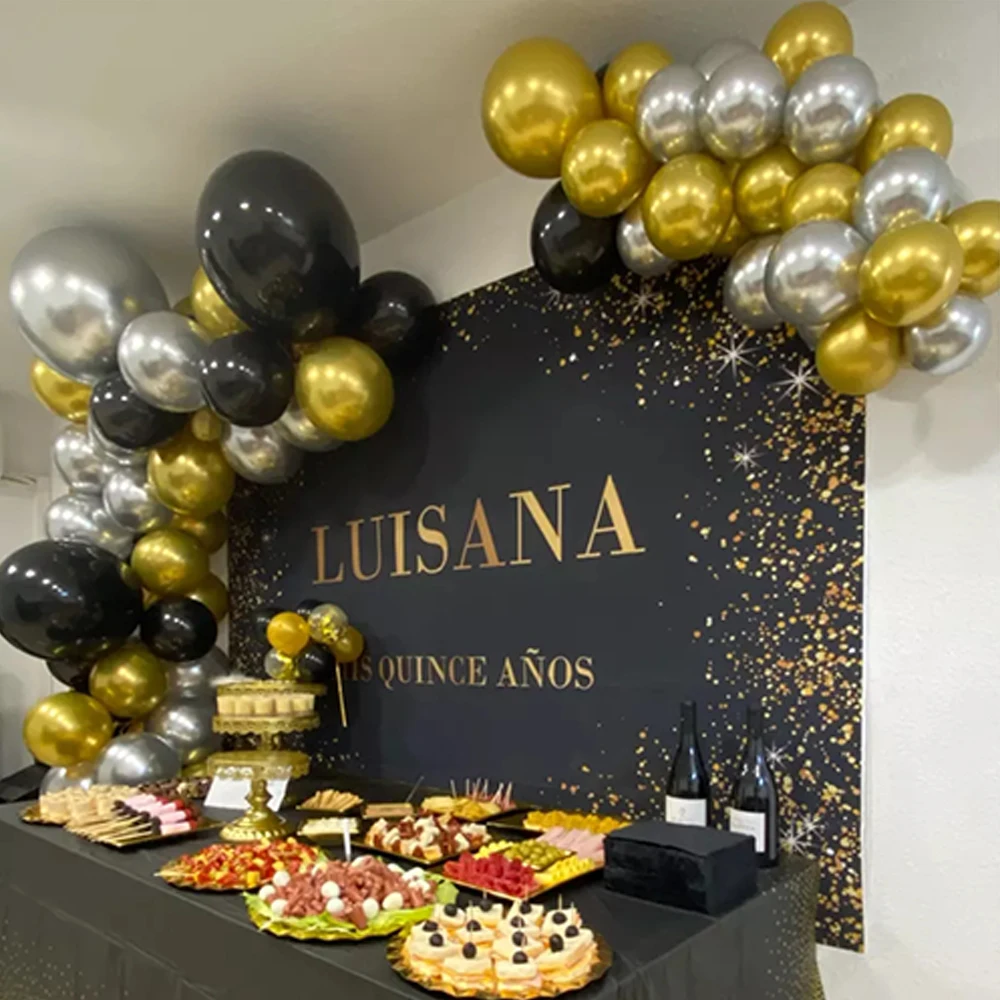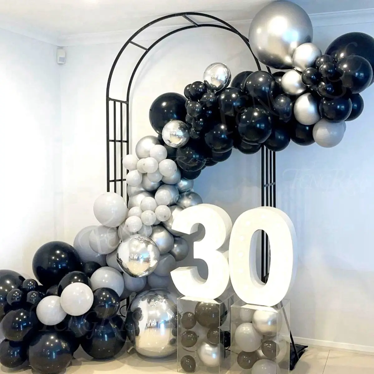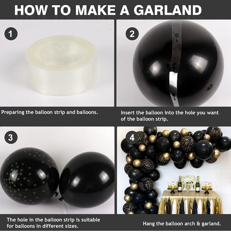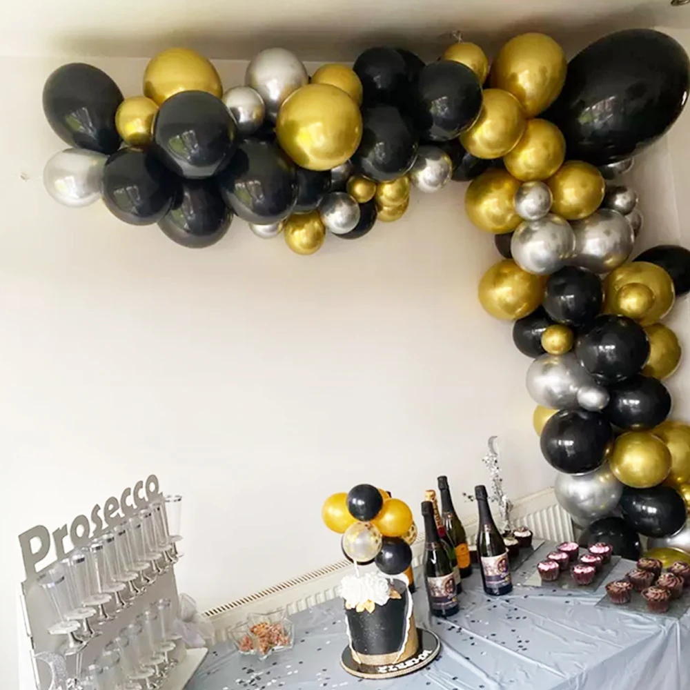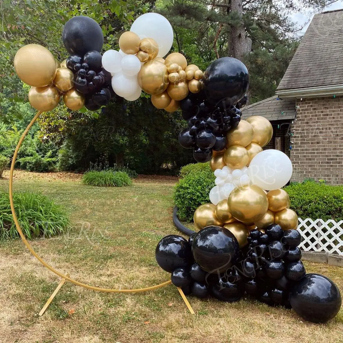 Шар-гирлянда из латекса, черного и золотого цвета, арочный комплект
