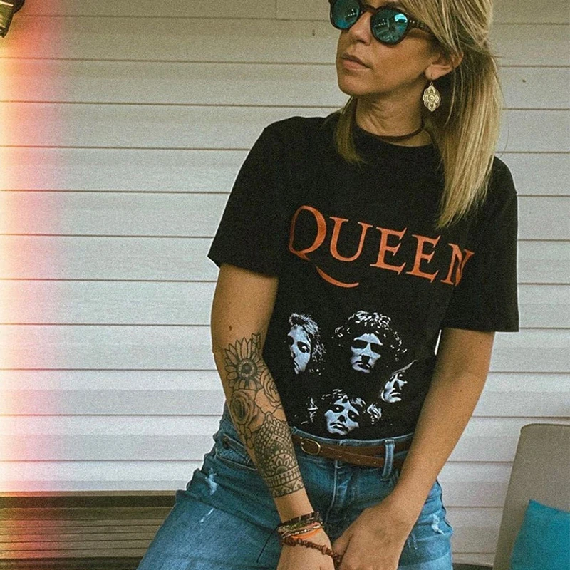 Блестящая рок-группа, футболка королевы, женская, плюс размер, 100% хлопок, летняя футболка, женская, винтажная, уличная футболка, футболка, одежда в стиле готика панк