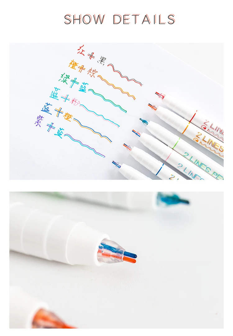 Kawaii Милая ручка с 2 линиями Акварельная чернильная ручка художес...