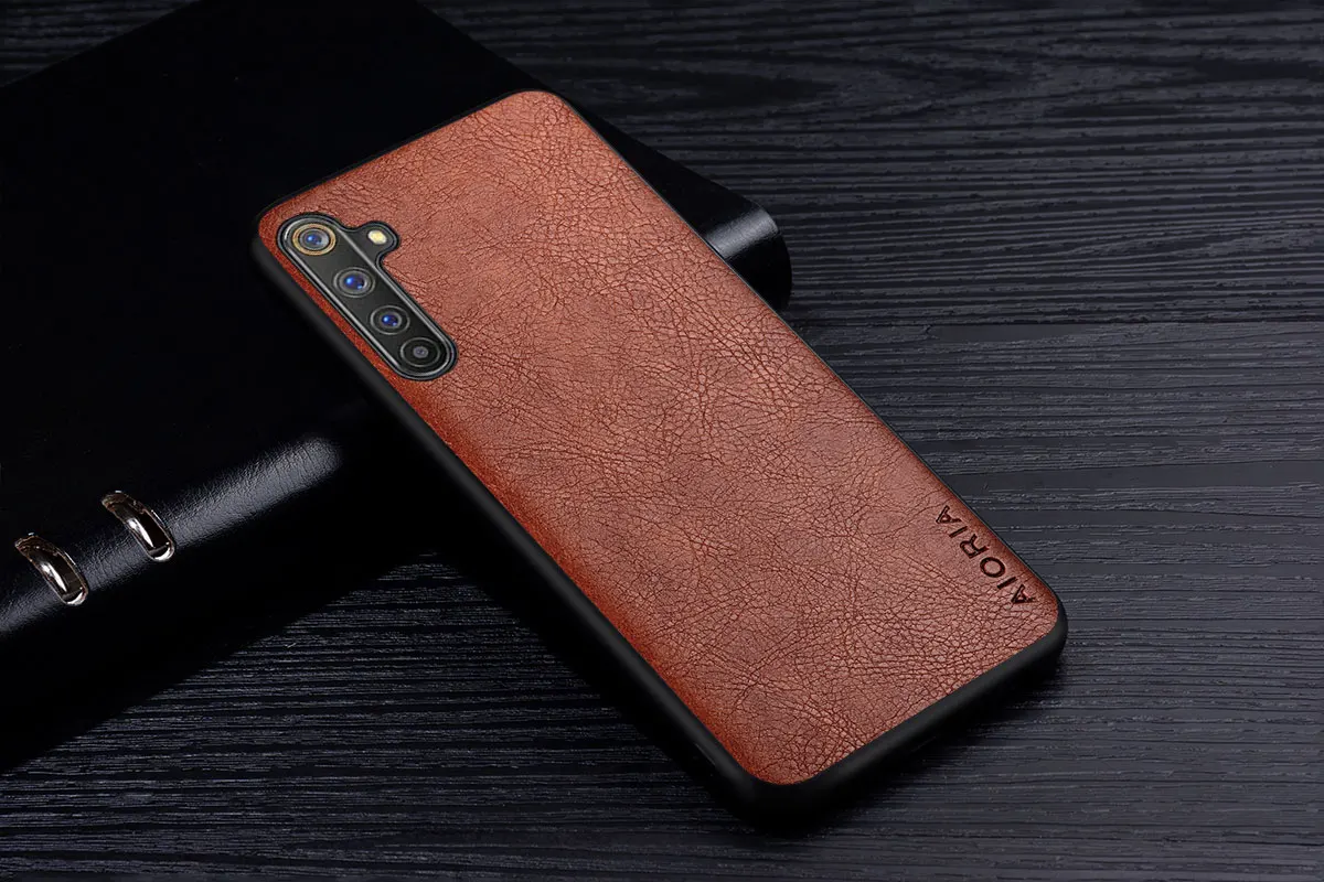 Кожаный чехол для Realme 6i 5i 5 Pro 5S Q 3 6 pro Премиум Ретро личи шаблон задняя крышка для oppo realme 6 pro 6i 5i 5s q 3 Чехол