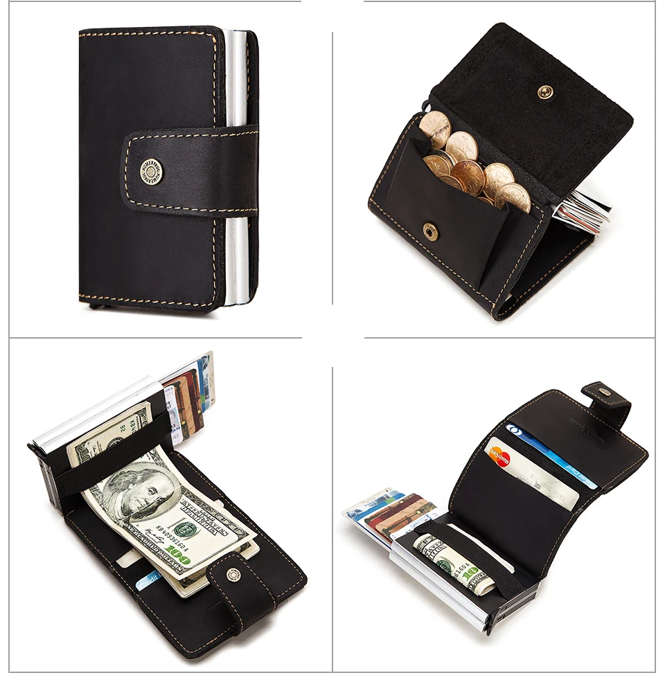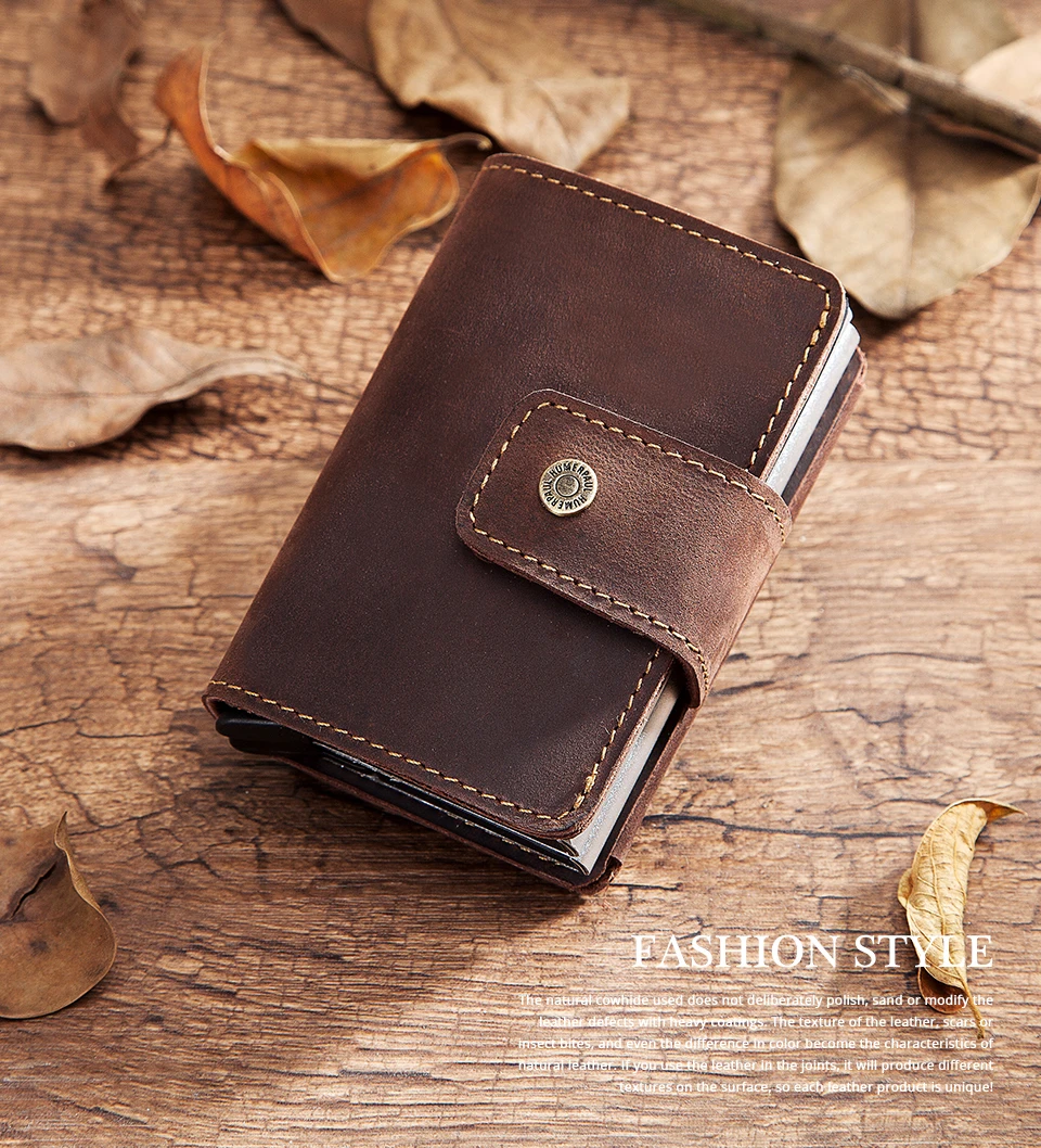 Кожаный мужской кошелек Crazy Horse, дорожный бумажник для мелочи на защелке, алюминиевый чехол с RFID для кредитных карт держатель для карт дюйма, чехол для удостоверения личности, 2021