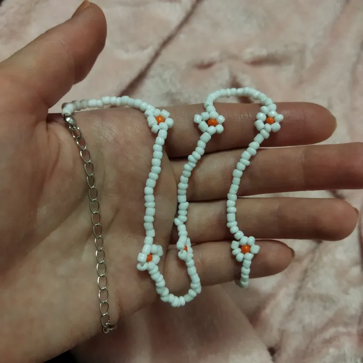 ПараметрыРазмер: 1 обхват 35 см, удлинительная цепочка 10 смТип 2: окружность 36 см, удлинитель 7 смМатериал: стеклянные бусиныЦвет: желтый, розовый, красный, цвет, белый, синий, зеленыйОписание:Особый цветочный дизайн: дизайн в форме цветка, крепкие морепродукты и Летний стиль, идеально сочетаются с другой одеждой.Материал: ожерелье длиной 35 см и имеет удлиненную цепочку длиной 10 см, которую можно регулировать в соответствии с вашими предпочтениями.Материал: ожерелье из бисера ручной работы, долговечное. Светильник, яркие цвета, легко носить с собой.Область применения: подходит для всех сезонов. Вы можете использовать эти бусы на пляже, праздники, дни рождения, вечеринки по макияжу и в других случаях.Подходит для подарков: вы можете использовать его в качестве подарка на день рождения/подарка на День Матери/подарка на День Благодарения/подарка на Рождество/подарка на День Святого Валентина/вашей жене, маме, сестрам, подругам и одноклассникам.Посылка:1 * богемное ожерелье с ромашками