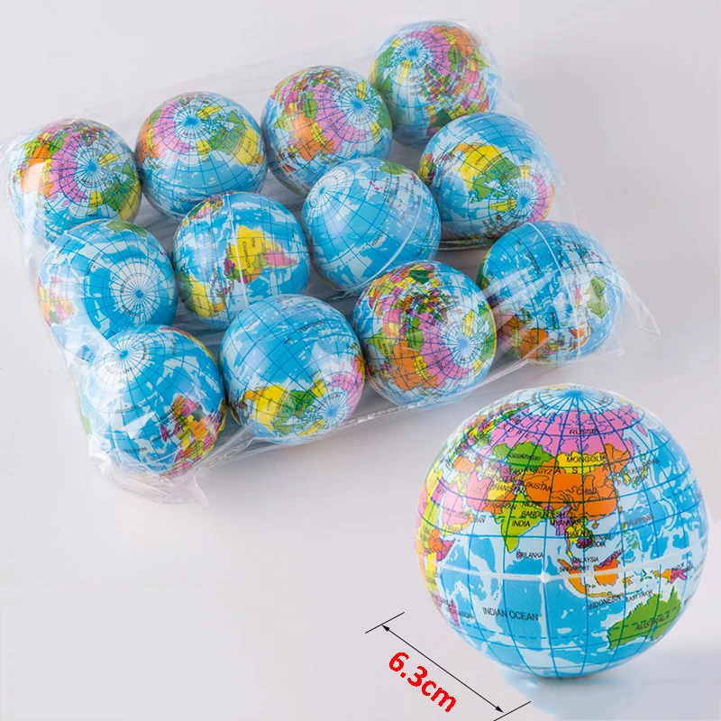 ПУ мяч для снятия стресса антистрессовый 6,3 см 7,6 см Глобус 12 шары мягкие игрушки для детей