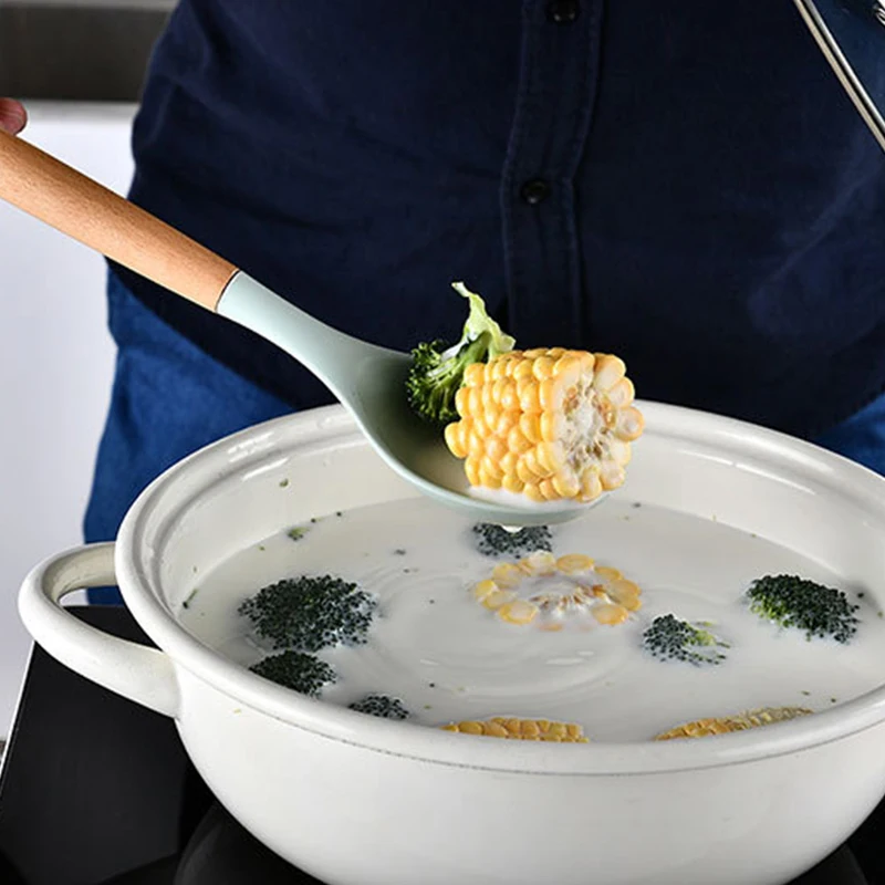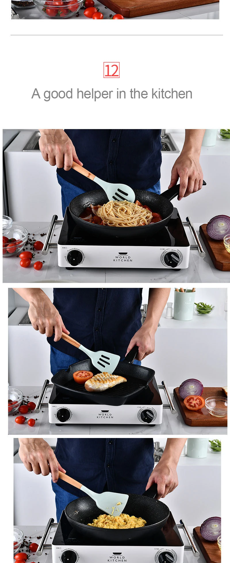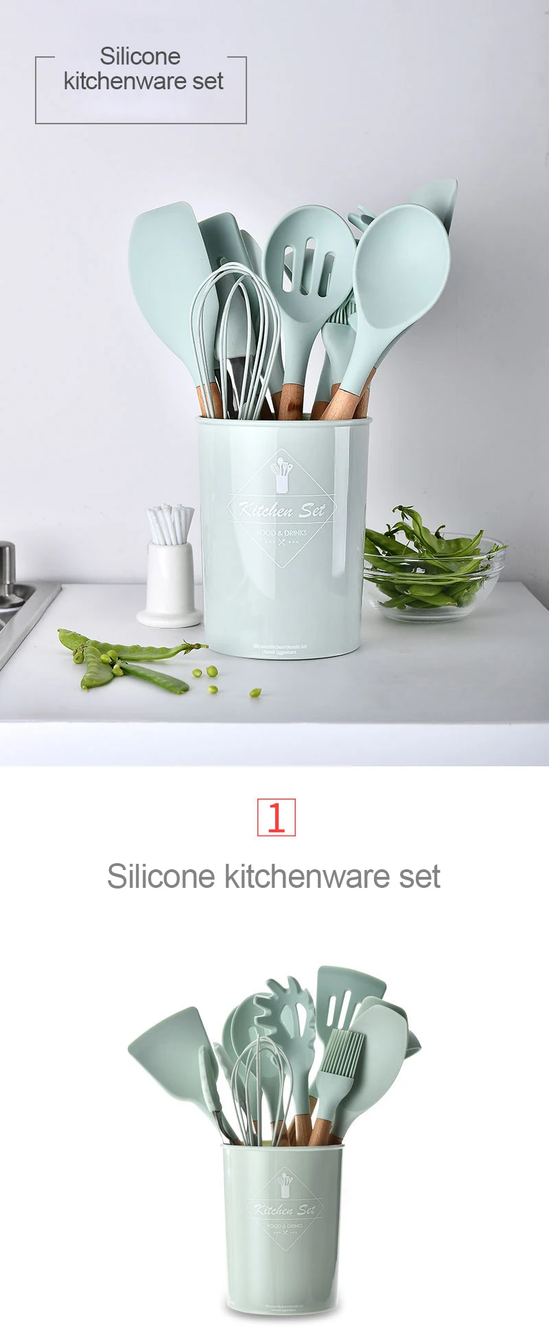612 чехол из поликарбоната и силикона Пособия по кулинарии набор посуды с антипригарным покрытием лопатка Черпак ложка-кисточка дуршлаг посуда с деревянными ручками инструменты Кухня гаджеты