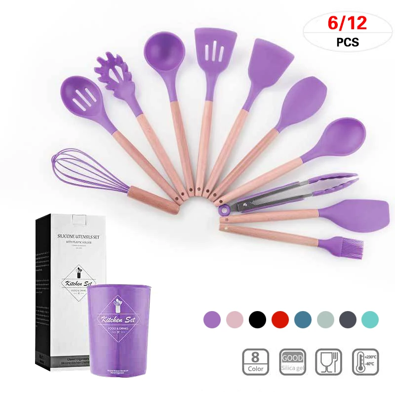 Набор силиконовой посуды-кухонный помощник, идеально подходит для всех видов продуктов и кухонных принадлежностей, жарки, перемешивания крема, масла, мороженого и т. д.Включает лопатку, щётку, остроконечную лопатку, круглое Тернер, ковш, прямую кромку Тернер, ложку, щипцы, паста вилку и идеально подходит для всех видов продуктов и приготовления пищи.