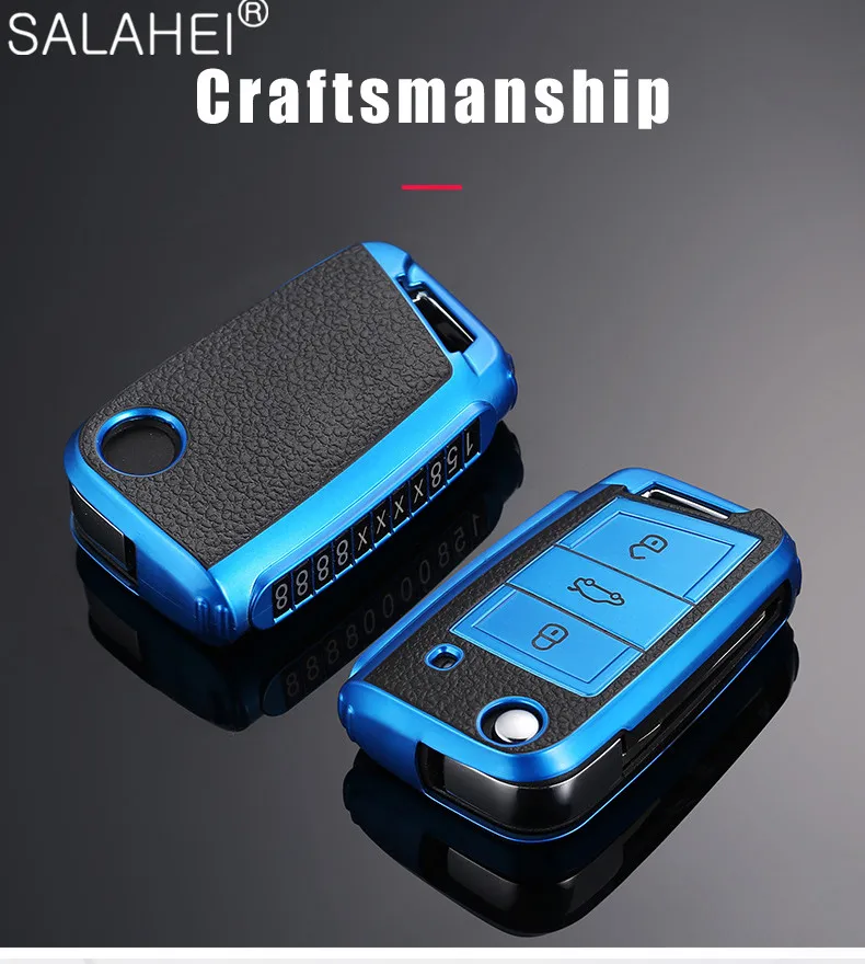 Чехол для автомобильного ключа из алюминиевого сплава и кожи для VW...