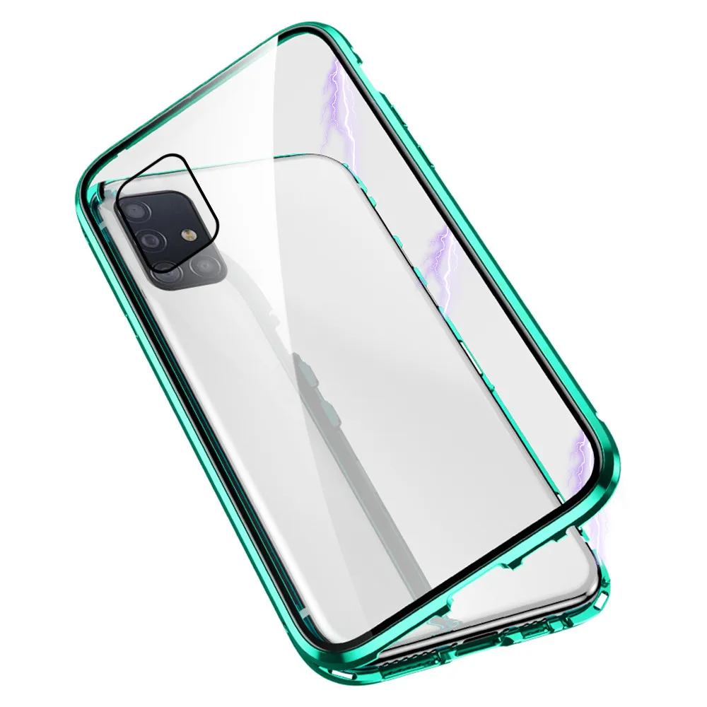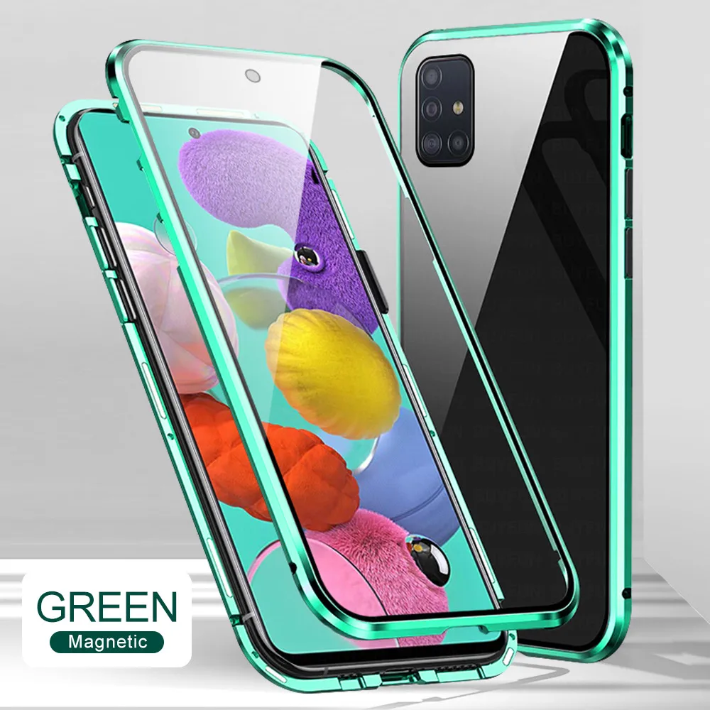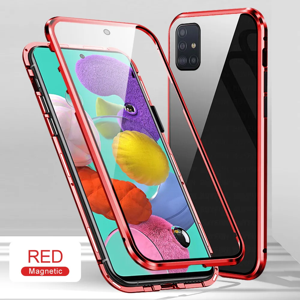Флип-чехол для Samsung Galaxy A51, A71, a515F, a715F, A 51, 71, двусторонний, с металлическими краями, стеклянный, полностью магнитный, 360