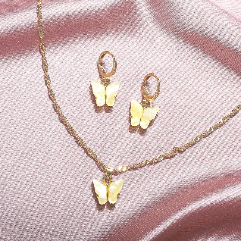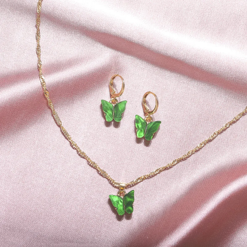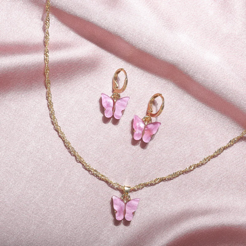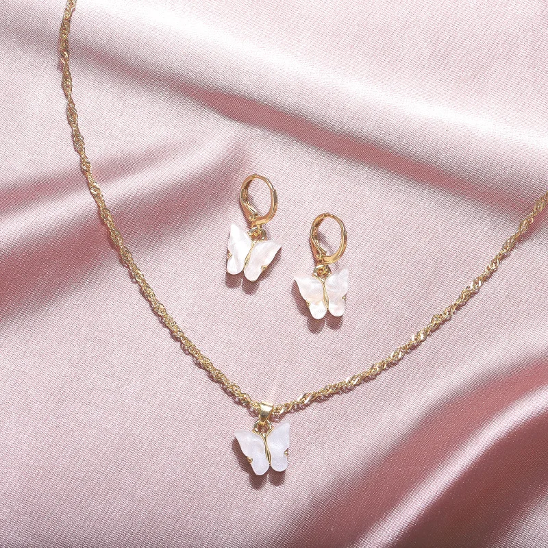 В Корейском стиле; Красивые серьги ожерелье комплект ювелирных изделий Мода серьги бабочки кулон для женщин простой сплав цепи ожерелье вечерние подарок
