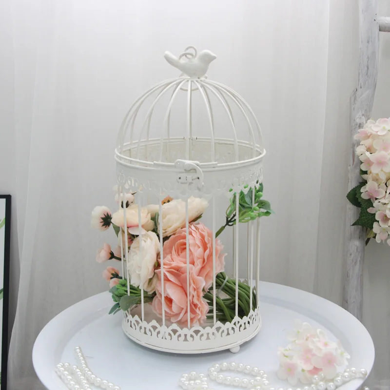 Железная металлическая клетка для птиц белая птичья клетка, украшение, подвесной цветочный горшок, свадебный подсвечник, Ювелирное Украшение